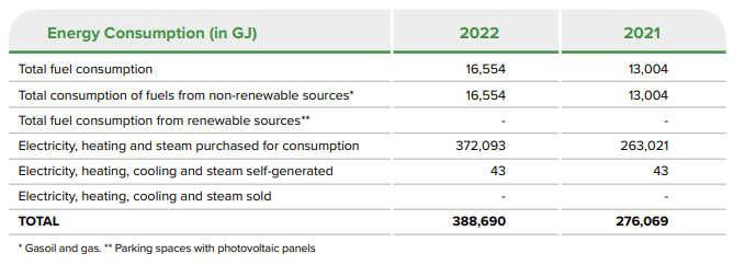 We implemented awareness-raising actions for the general public and our personnel, through posters and installations such as led lights, motion sensors, and improvements in heating systems, to promote and guarantee energy savings. We monitor the energy consumption of all our establishments on a monthly basis. At the same time, every year, new projects are analyzed, and, on an ongoing basis, actions are taken to minimize consumption, which include: