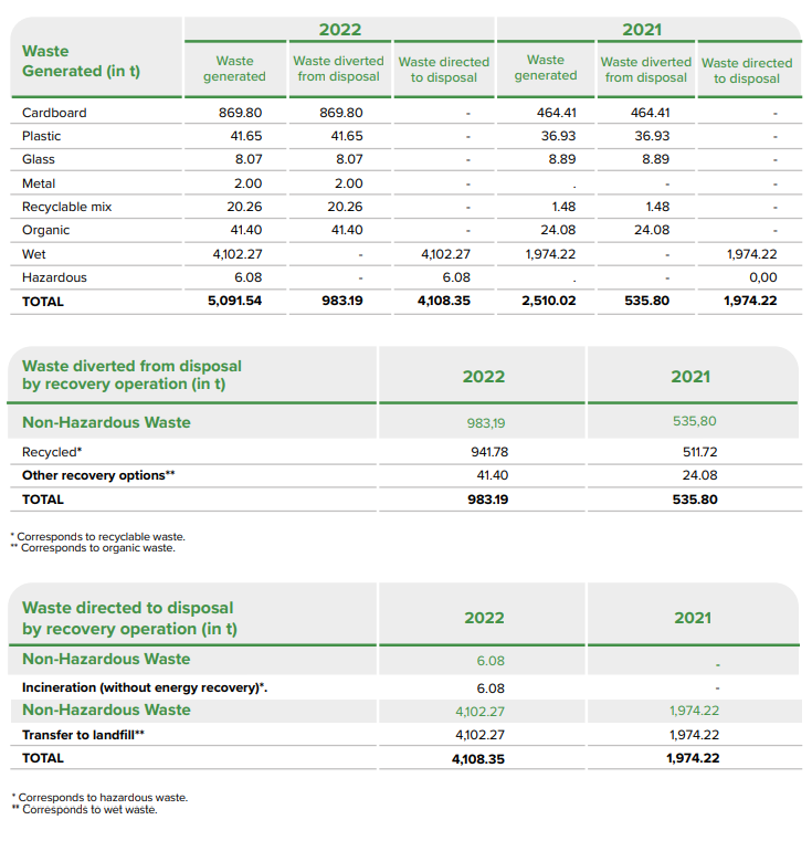 We are working on a waste management system that allows us to recycle a significant fraction of the material produced in our properties. At the same time, we are developing new ways and opportunities to integrate with social organizations and cooperatives in order to value the recovered materials. Recyclable materials are collected four times a week or even daily. We work with cooperatives and local organizations that, through the collection, classification and commercialization of recyclable materials, allow the neighbors to find a means of subsistence and a source of income.