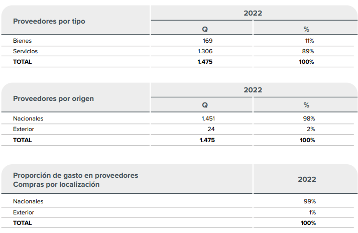 La Compañía compra y/o contrata a proveedores de bienes y servicios. Nuestras compañías proveedoras pueden ser pequeñas empresas regionales, así como multinacionales, siendo un 98% de ellas de origen nacional.