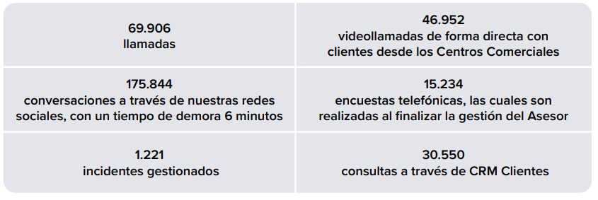 A partir de 2021, se trabajó en conjunto con la Consultora ENTA, con el objetivo de crear nuevos procesos y definir KPIs y herramientas para agilizar nuestra atención. Al inicio del período reportado, se realizó la integración entre las plataformas externas (IVR, Bot) con nuestro CRM, para contar con mayor información de nuestra cartera de clientes, con el fin de analizar y colaborar en las tomas de decisiones y optimizar los servicios de forma permanente. Estas mejoras han modificado la percepción de calidad de servicio que tienen nuestros clientes: el NPS (Net Promoter Score) del Contact Center ha crecido en el último año, situándose en más de 70 y alcanzando los objetivos de KPI definidos.